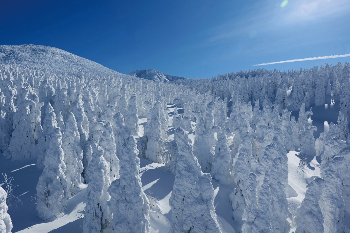 冬の蔵王を訪れるのなら、樹氷は見逃せません。12月〜翌2月の期間限定で、樹氷幻想回廊ツアーも開催。暖房付きの特別車両「ナイトクルーザー」に乗って、ライトアップされた樹氷を間近で楽しめます。