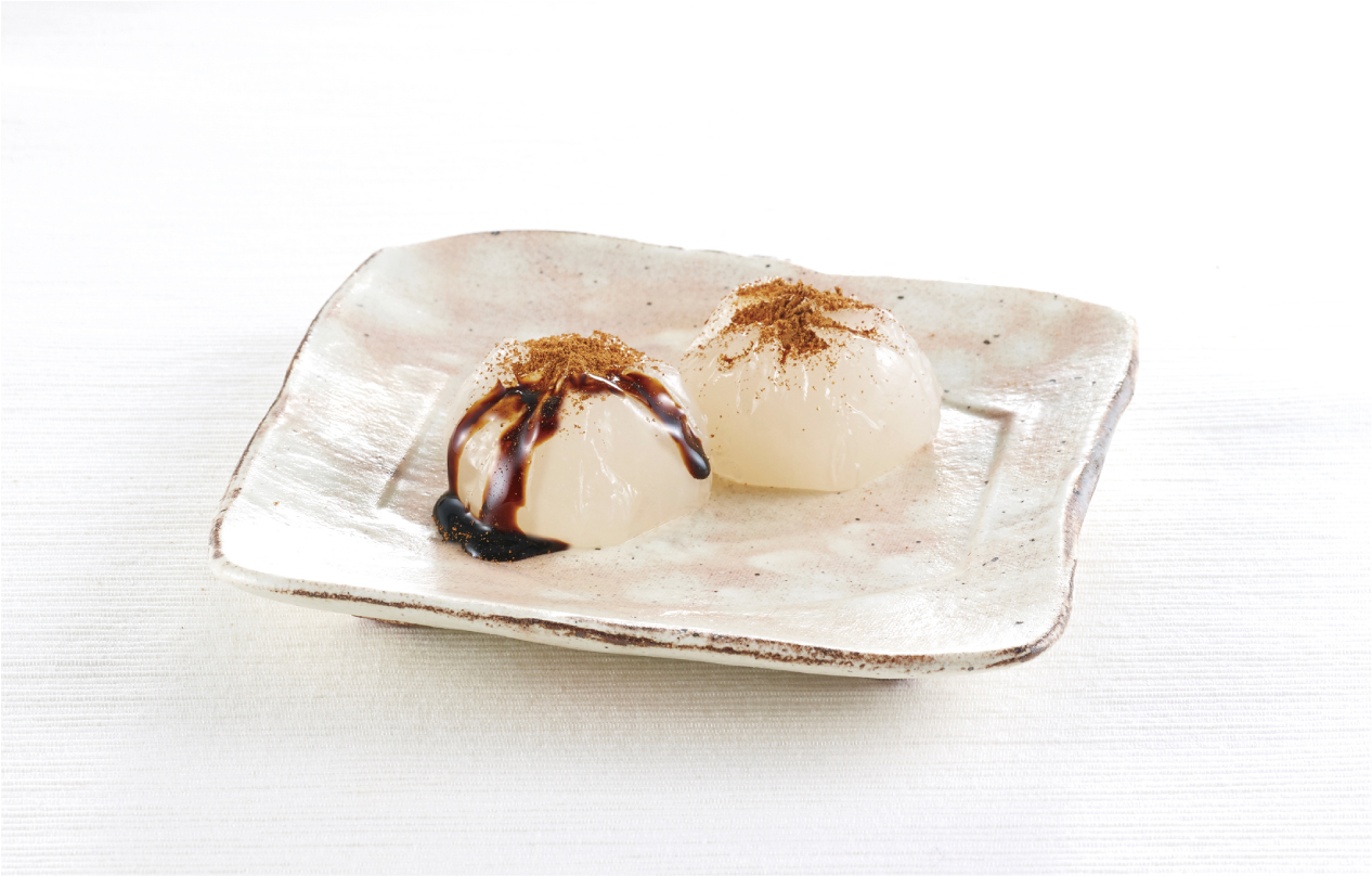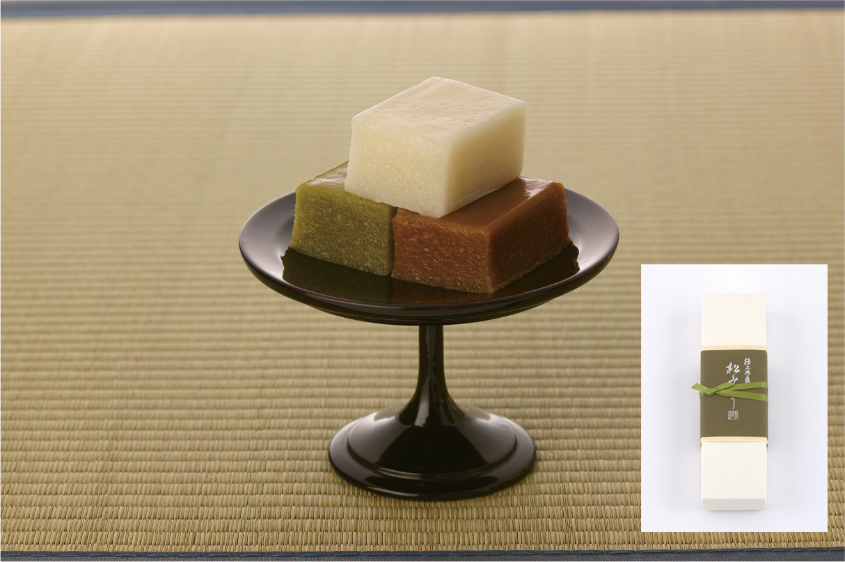 「わらび餅」と「ういろ」の食感を合わせ持つ新食感のういろです。お好みで付属の高級きな粉「京碾ききな粉」と黒みつをかけてお召し上がりください。