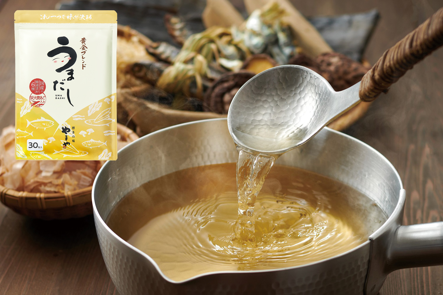 6種類の厳選だし素材を黄金比でブレンドした、万能だしパック。煮出せば簡単に本格だしがとれる「うまだし」で、どんな料理もプロの味に仕上がります。