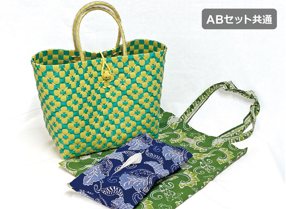 ABセット共通 カゴバッグ、ティッシュカバー、トートバッグ