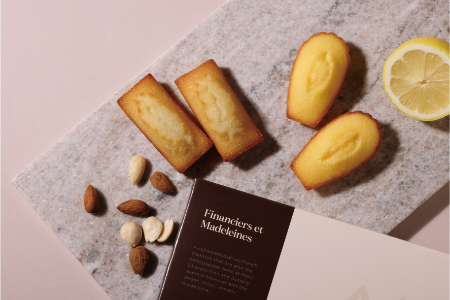 アーモンドの香りが引き立つフィナンシェと、ラム酒とレモンが香るマドレーヌ。